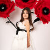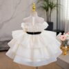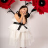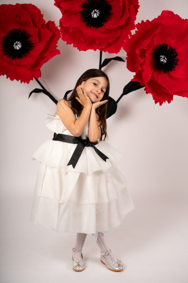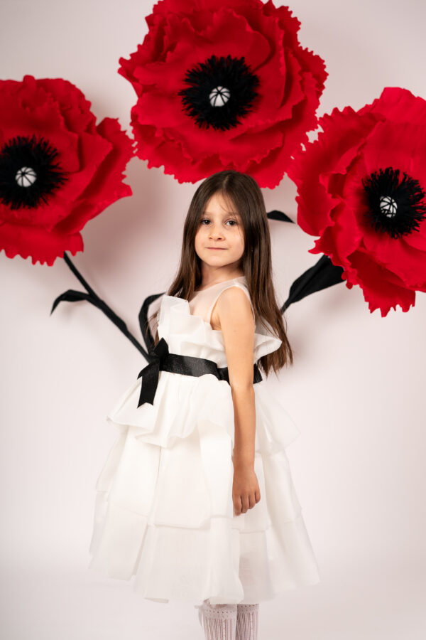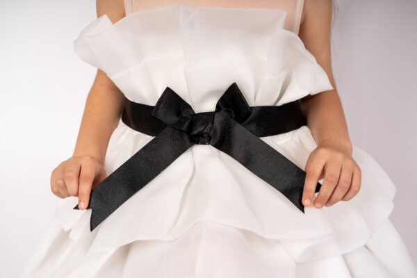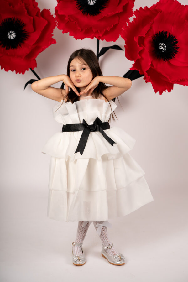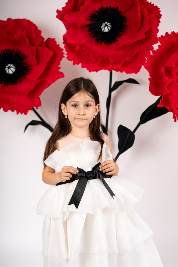 Rochie fete Patricia alba cu cordon negru din organza evenimente