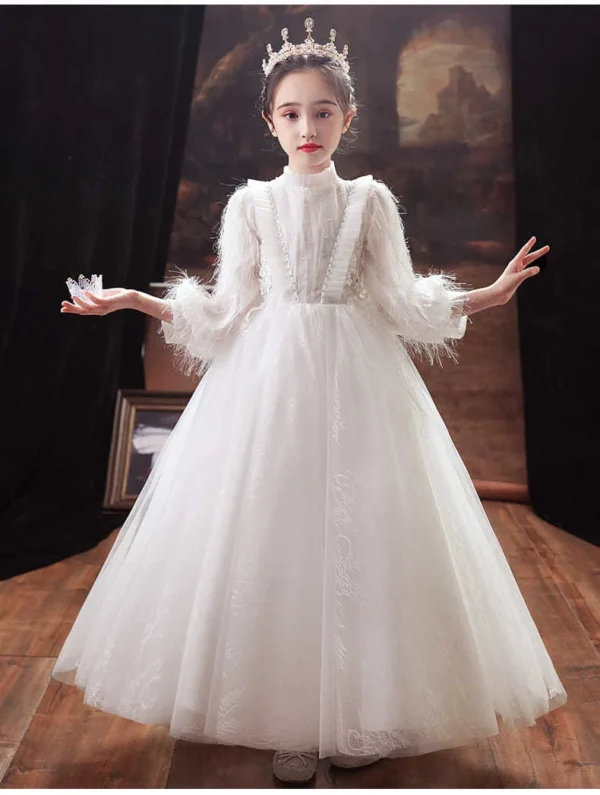 Rochie fetite Printesa zapezii alba lunga tull
